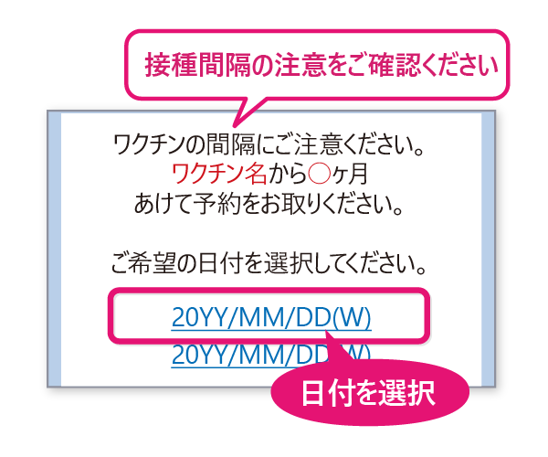 接種間隔の注意をご確認してから、ご希望の日付をお選びください。